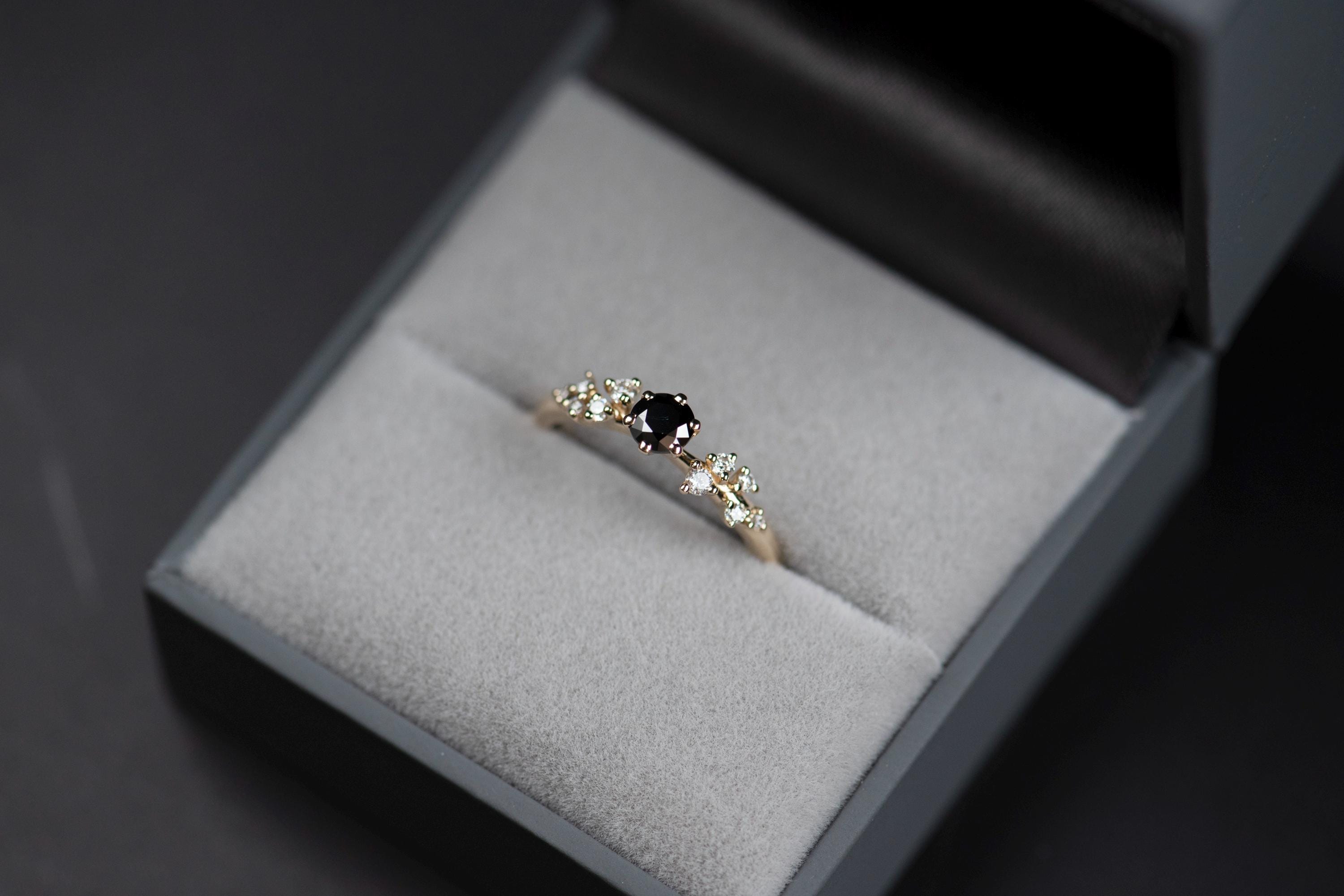 14K white, yellow or rose gold multistone 0,3 ct black diamond and diamonds or moissanites engagement ring - MORE DETAILS BELOW