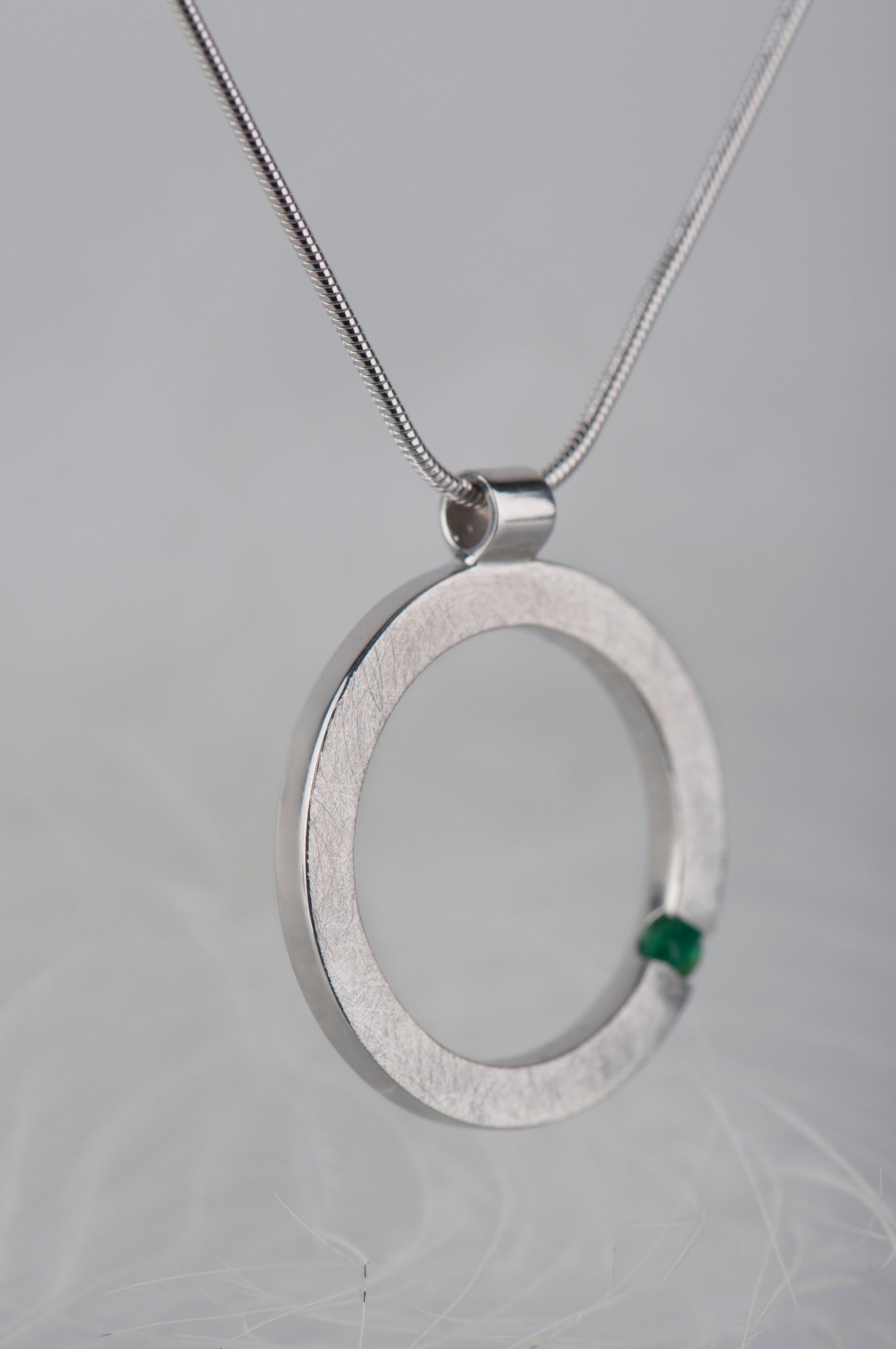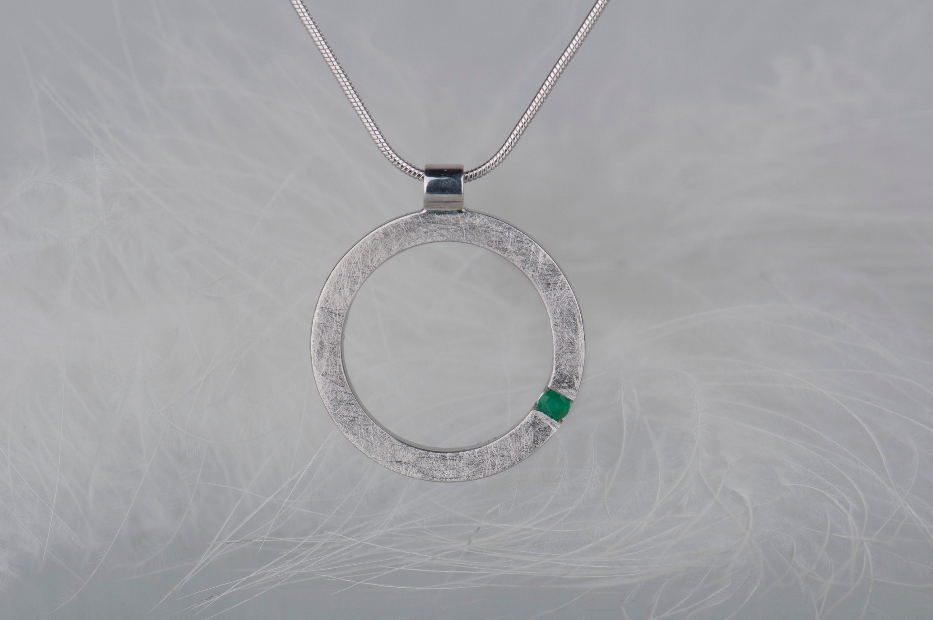 Are you searching for minimalist sterling silver jewelry? How about this simple and delicate emerald pendant necklace? This necklace looks modern but subtle because of the combination of small green stone and rough, scratched silver surface. Since emerald is May birthstone this necklace will be a great choice for a birthday gift for her. But it would also be a good idea for many other occasions like an anniversary, Christmas, Valentine's Day or simply as a little treat for yourself :)
